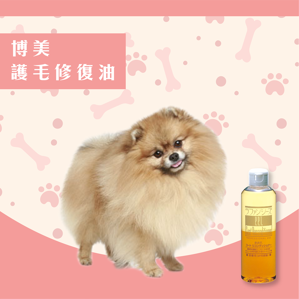 博美犬屬於長毛犬的一種,牠的毛髮較為直順,需要經常梳理照顧,因為一不小心可能就會變成毛躁乾枯,容易打結!因此非常需要主人日常的護理,不僅需要使用輕軟蓬鬆系列的產品來洗澡,更需要使用梳毛劑來做日常的的梳理,才能讓牠毛髮能澎順而不打結,並且能讓毛髮擁有像新生毛般的柔軟。